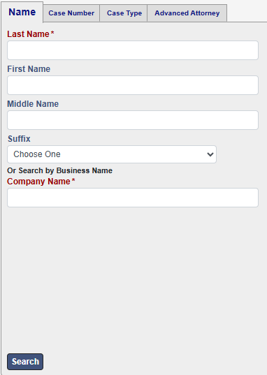 - Enter the Case or Party Information: Input the appropriate name or case number in the search fields.